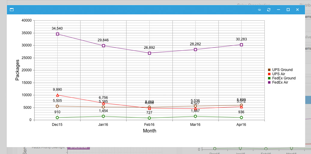 - Shows the percentage and number of packages shipped to different states by service types and gives average package cost of service type used and total packages shipped using that service type for a given invoice number and invoice week as a subtotal. See a sample.