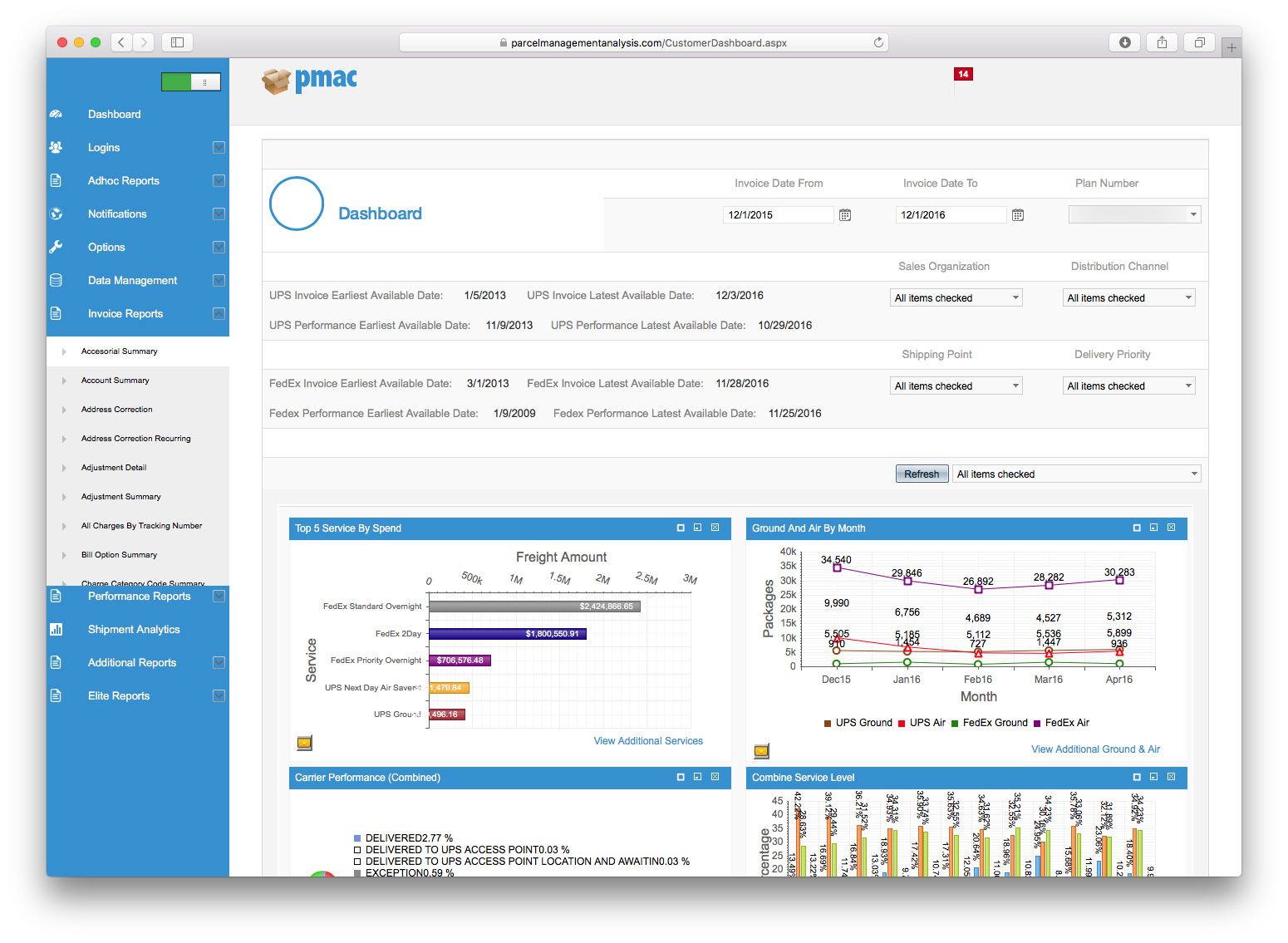 PMAC’s shipping analysis reports are the most comprehensive in the industry. Our detailed, in-depth reporting gives you complete parcel visibility that enables you to evaluate service performance with drill-downs to shipment integrity, accessorial charges, parcel distributions and service levels in dimensions such as states, zip codes and more.