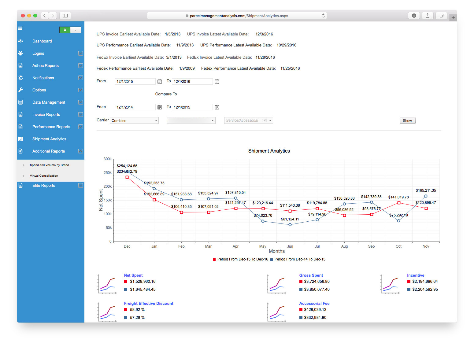 - Summary of total transaction, billed weight, charges and percentage spent for each account number. See a sample.